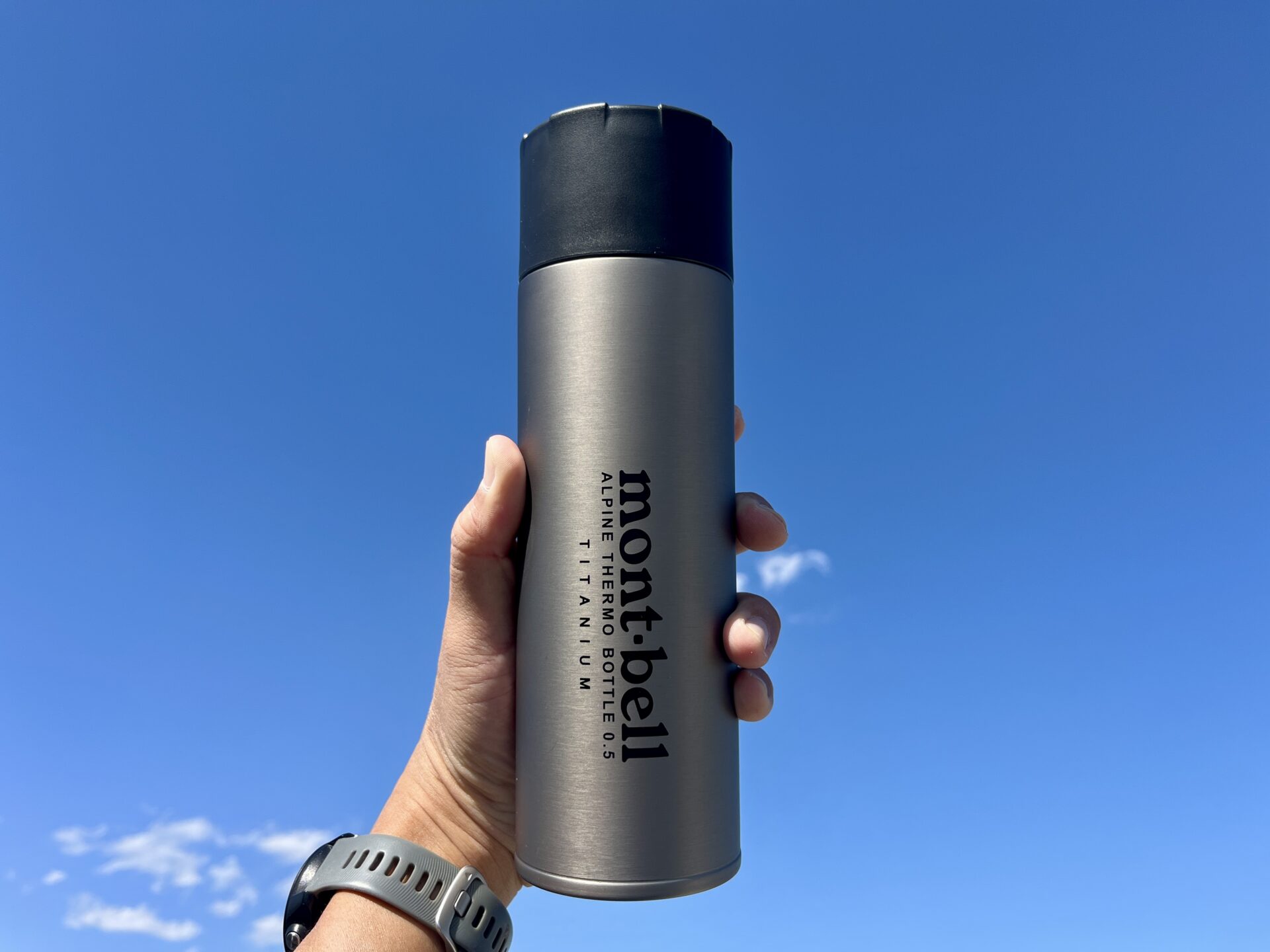 ボトルホルダーには500ミリのペットボトルだけでなく、水筒も収まりました。