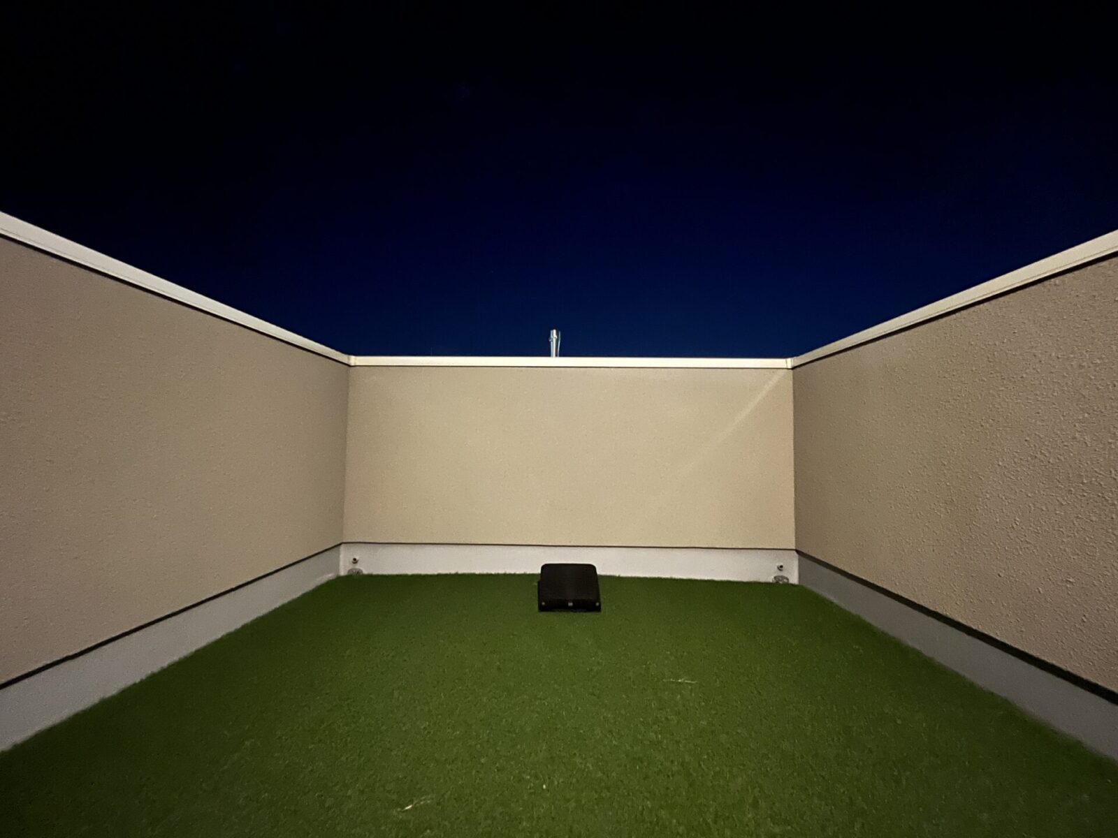 夜は屋上でストレッチボードに乗りながらのスタンディングバー。