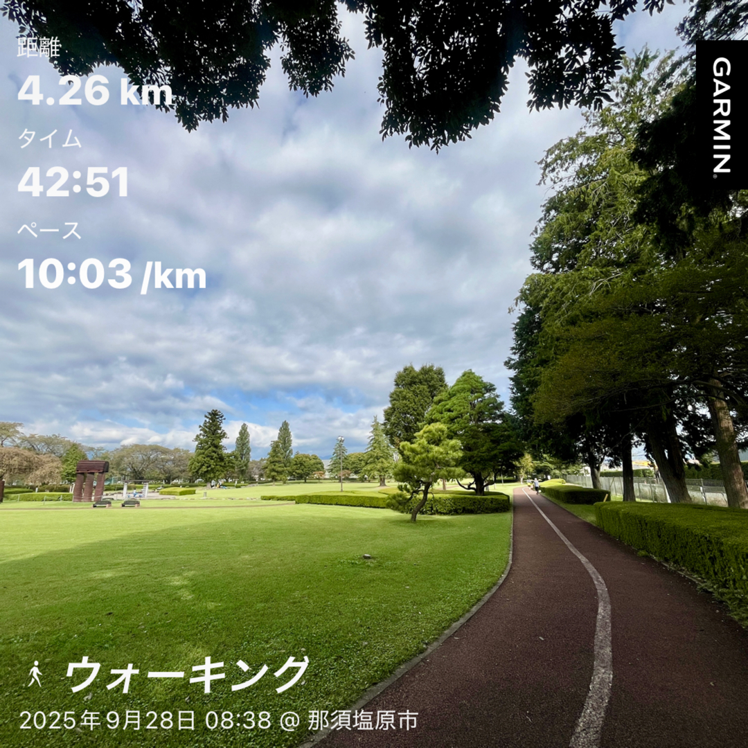 早めに現地入りできたので、キレイに整備されているにしなすのスポーツプラザでウォーキング。