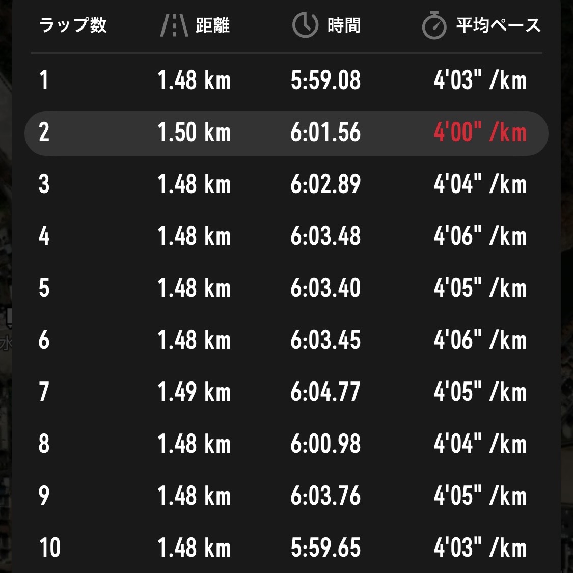 500mごとにラップを確認(2分)して走ったんですが、毎回スレスレかチョイこぼし。