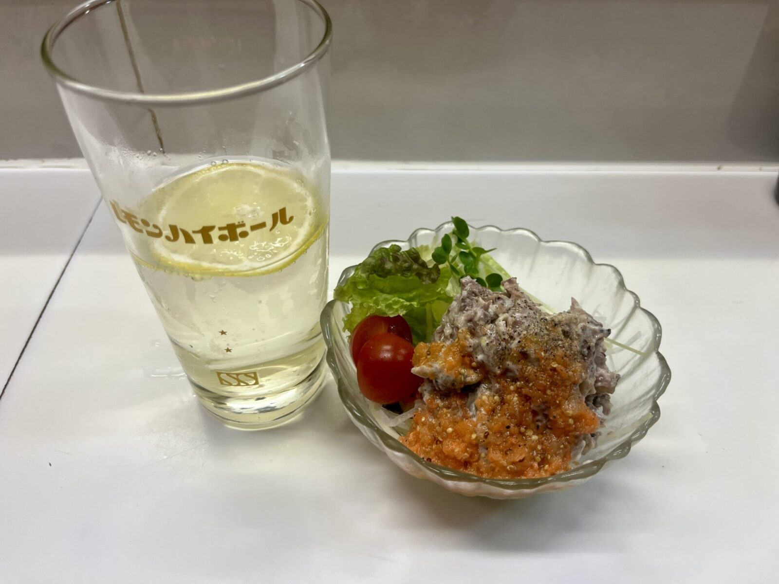 強炭酸のボールと自家製ツナサラダが美味いです。