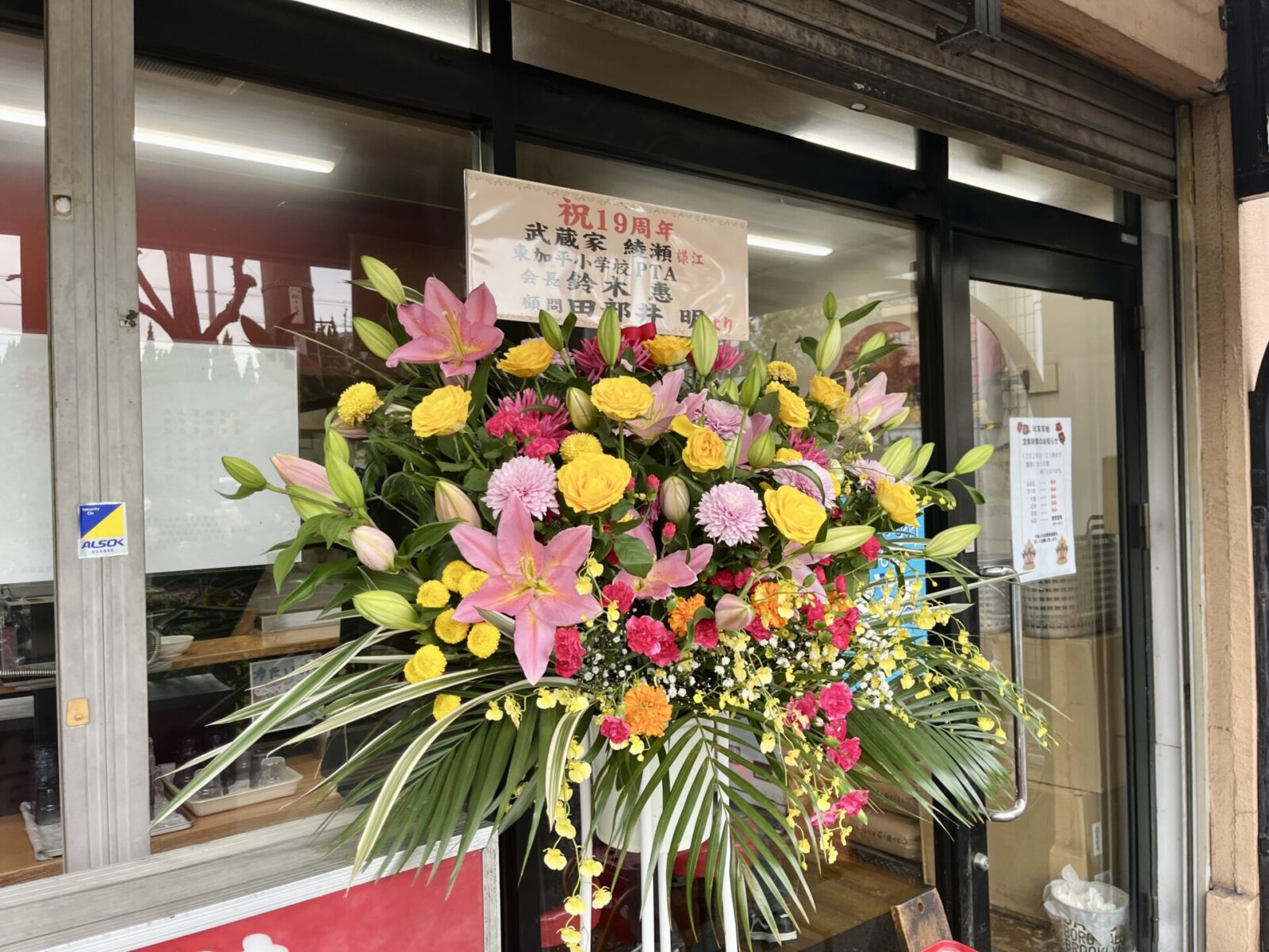 近隣小学校のPTAからお祝いのお花が届く素敵なお店です。