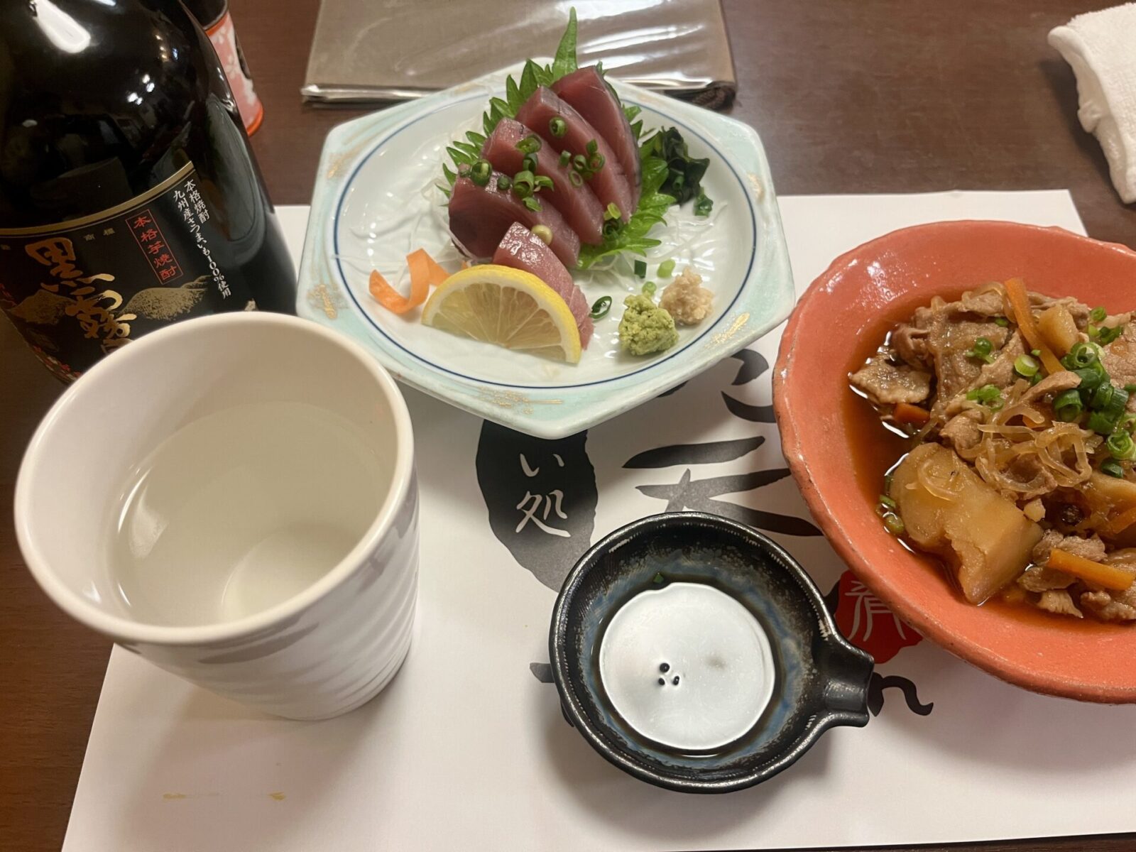 ボールとカツオと肉じゃがとボトルセットで1,850円でした。