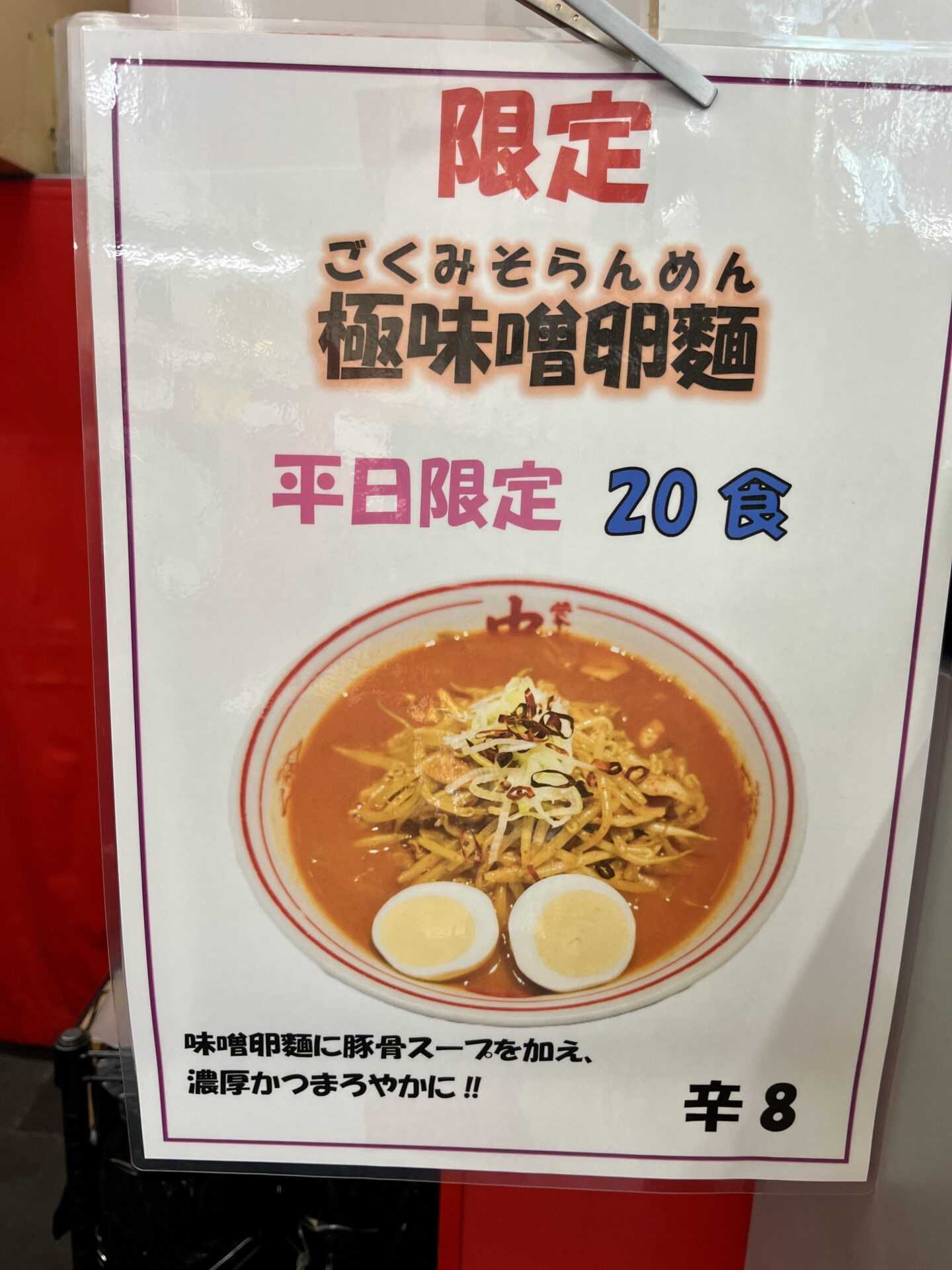 注文後に、おいしそうな限定ラーメンがあることに気が付いてガッカリでした。
