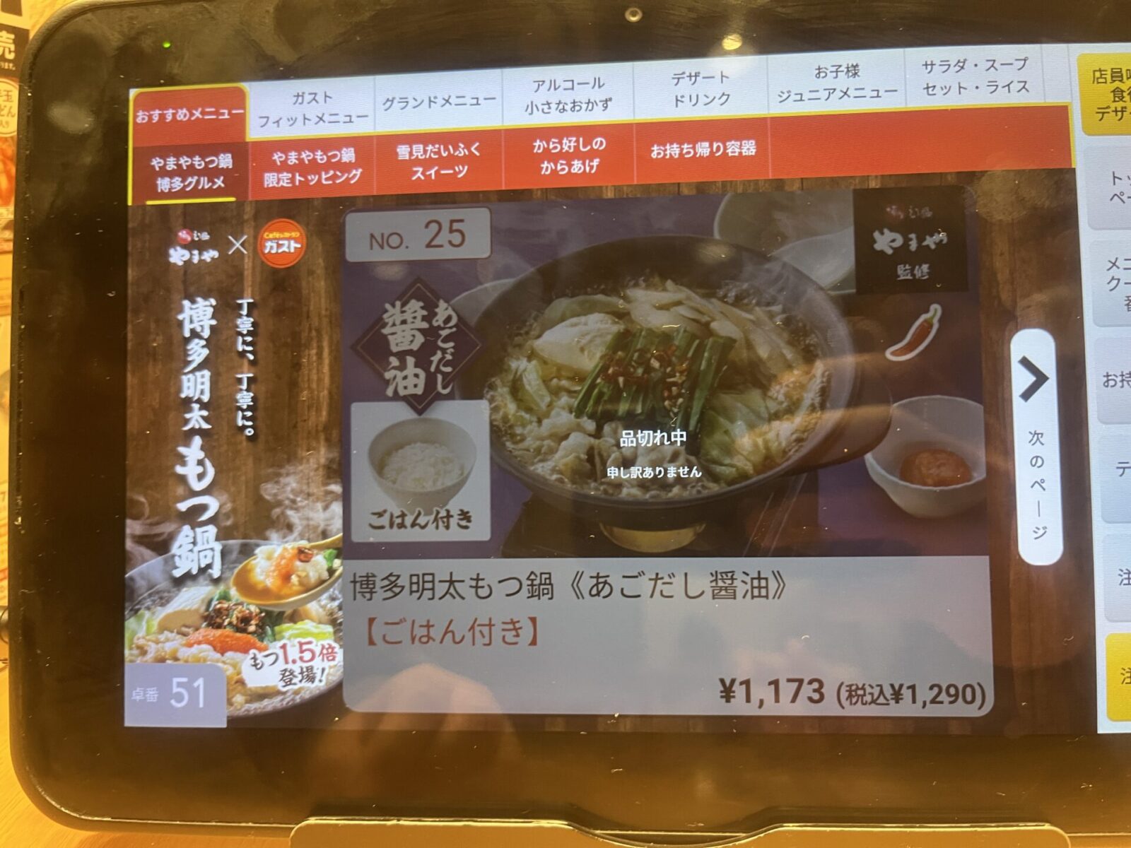 気になっていたガストのもつ鍋がのれんラジオでも紹介されていたので食べに行ったんですが、残念ながら売り切れでした。