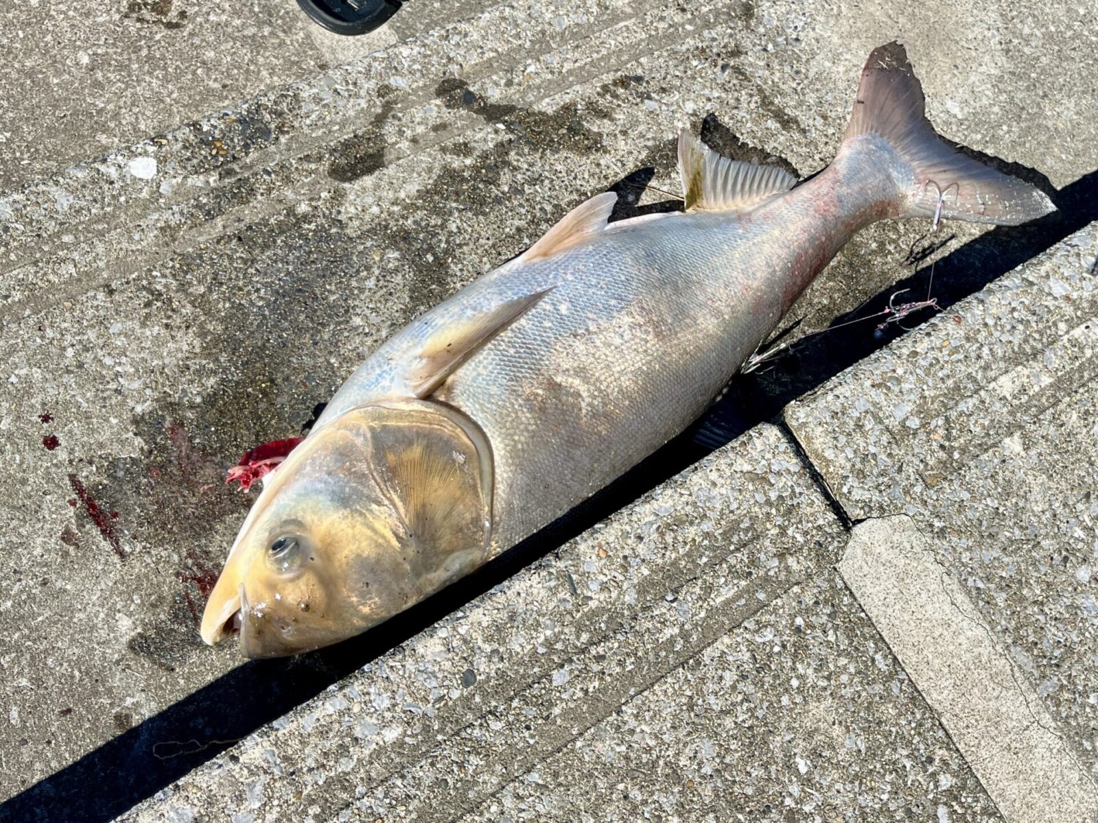 そんなつもりはなかったのに巨大魚が掛かってしまったのか、巻いても巻いても糸がドンドン出ていきますが、粘ったお兄さんの勝利!
