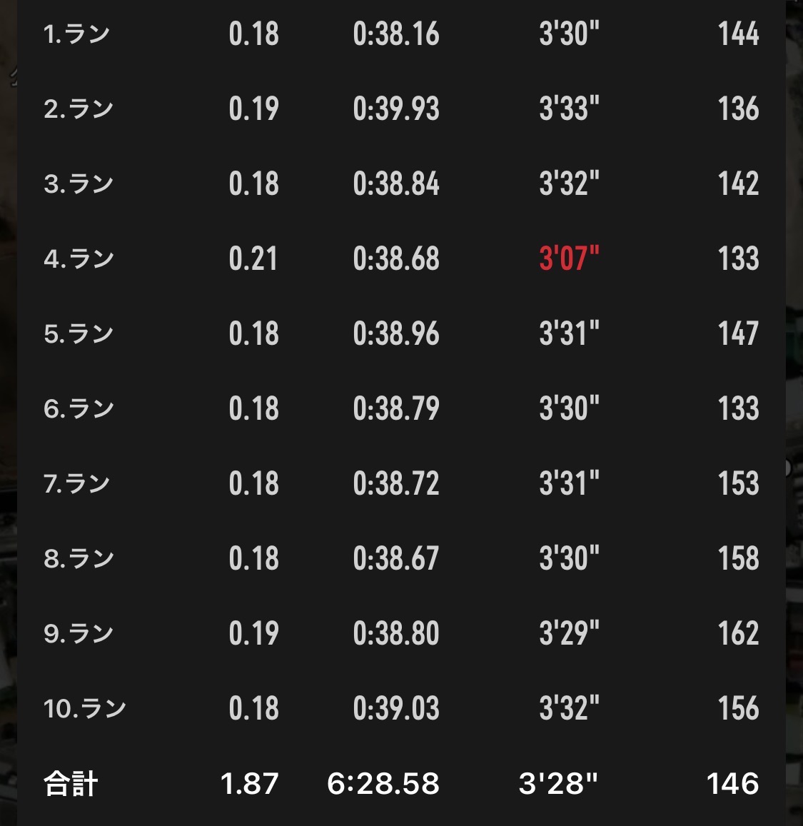 なんと目標としていた40秒カットで10本走ることができました。