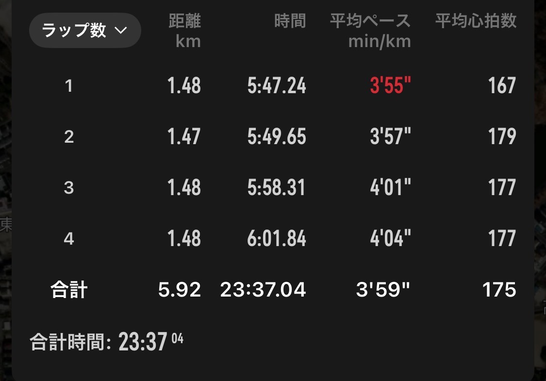 いつやめようか迷ったんですが、設定から遅れても辞めない水元練の先輩たちを思い出して予定通り4周走りました。